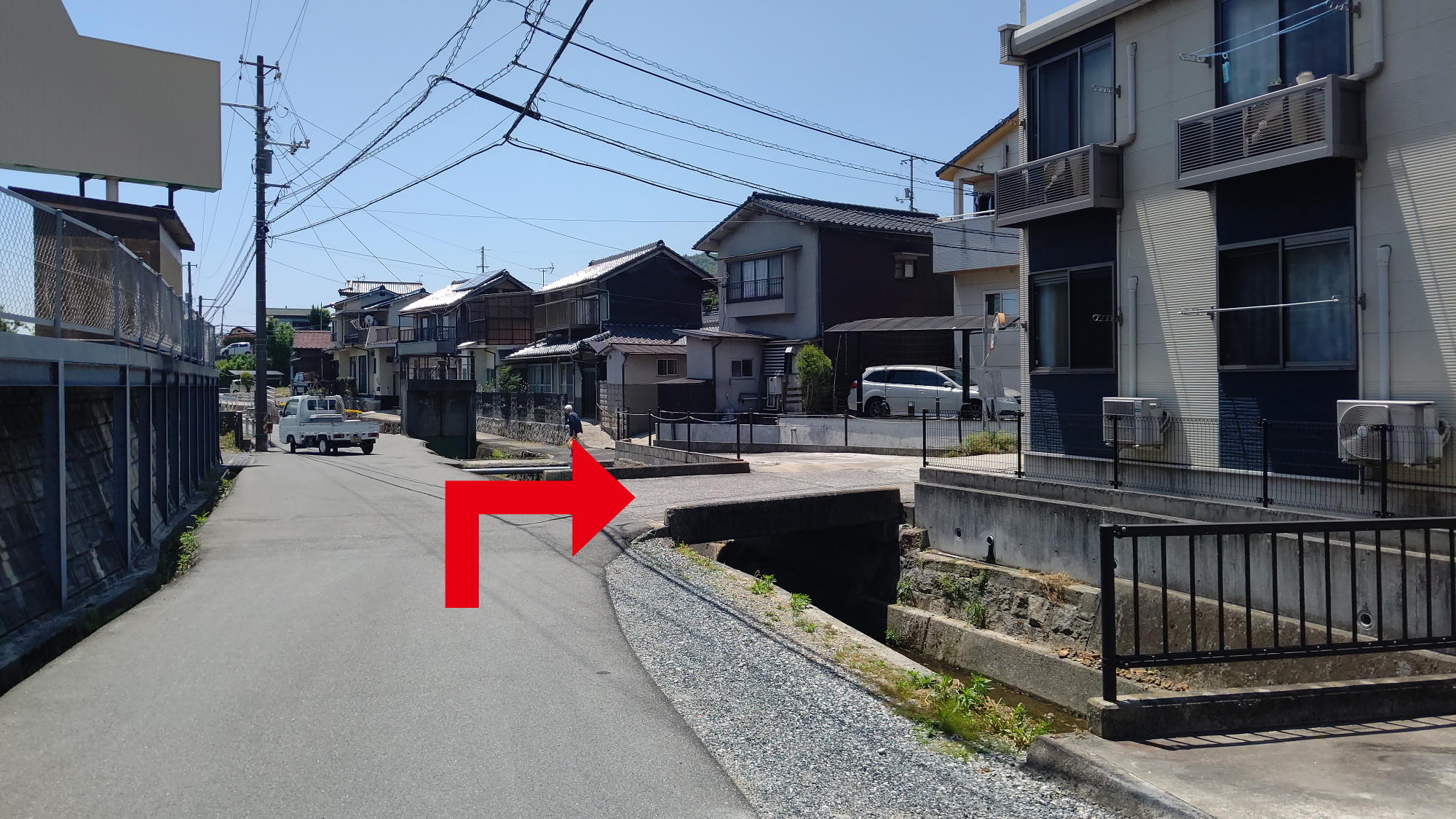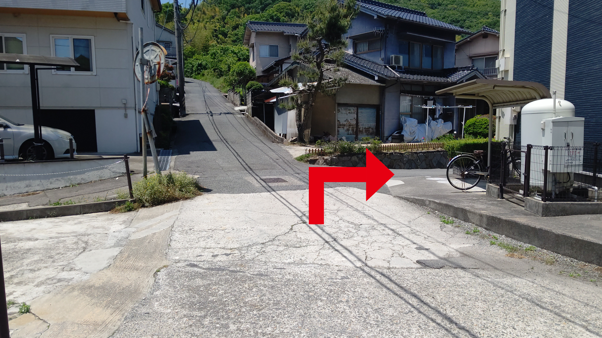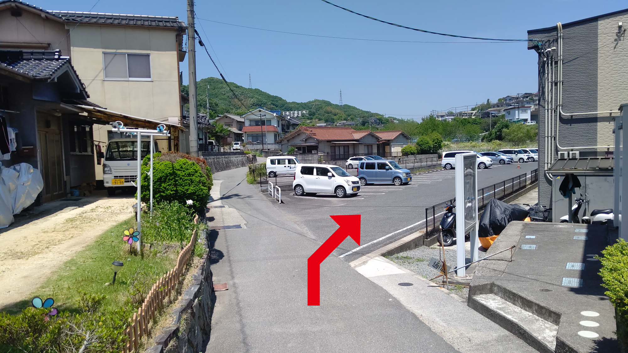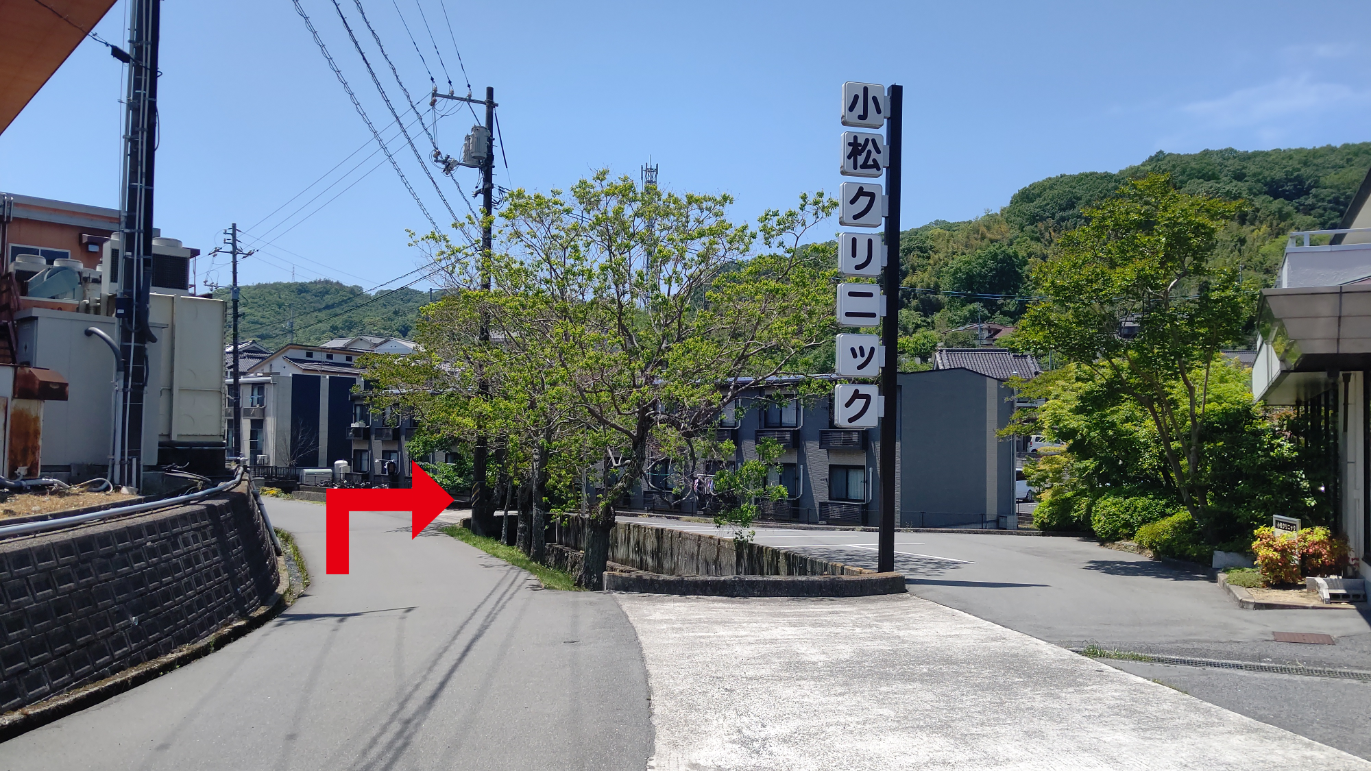 医院横駐車場をまっすぐ直進(約30m)して右折